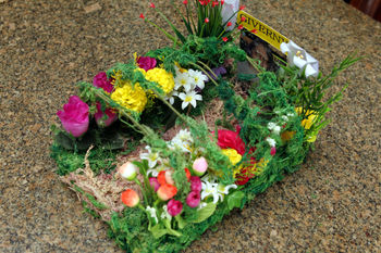 Reprodução em flores artificiais e serragem. 0,28m(larg.) x 0,35m(prof.) x 0,15m(alt.)